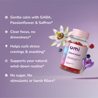 A calming daily gummy made with science-backed ingredients like GABA, Passionflower & Saffron — to help you feel steady, clear, and emotionally balanced. No added sugar.*